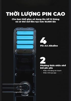 • Đặc điểm nổi trội: mật khẩu, thẻ từ, vân tay, khoá cơ, App điện thoại.